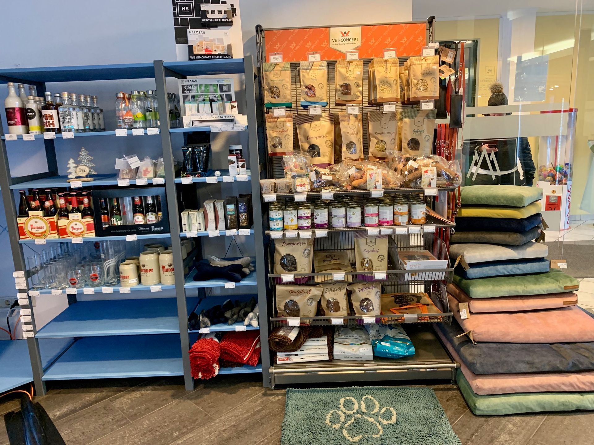 Kaffee, Tee, Milch oder Zucker gibt es genau wie Getränke bzw. Futter oder Leckerlis für Ihren Liebling.